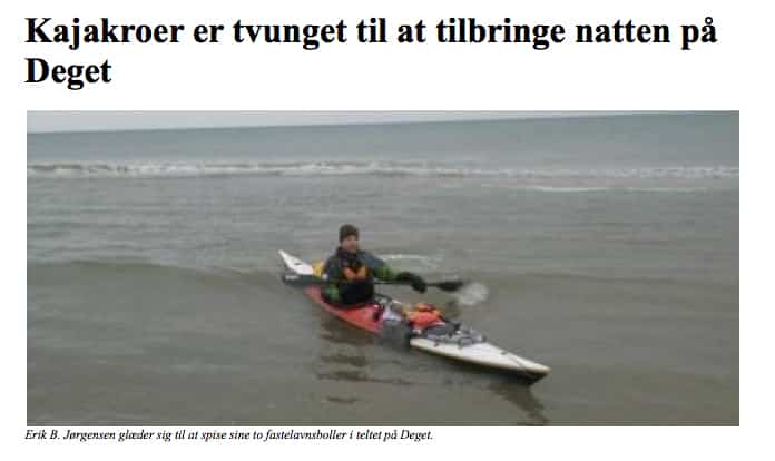 Se artiklen her: Kajakroer er tvunget til at tilbringe natten på Deget, Kanal Frederikshavn